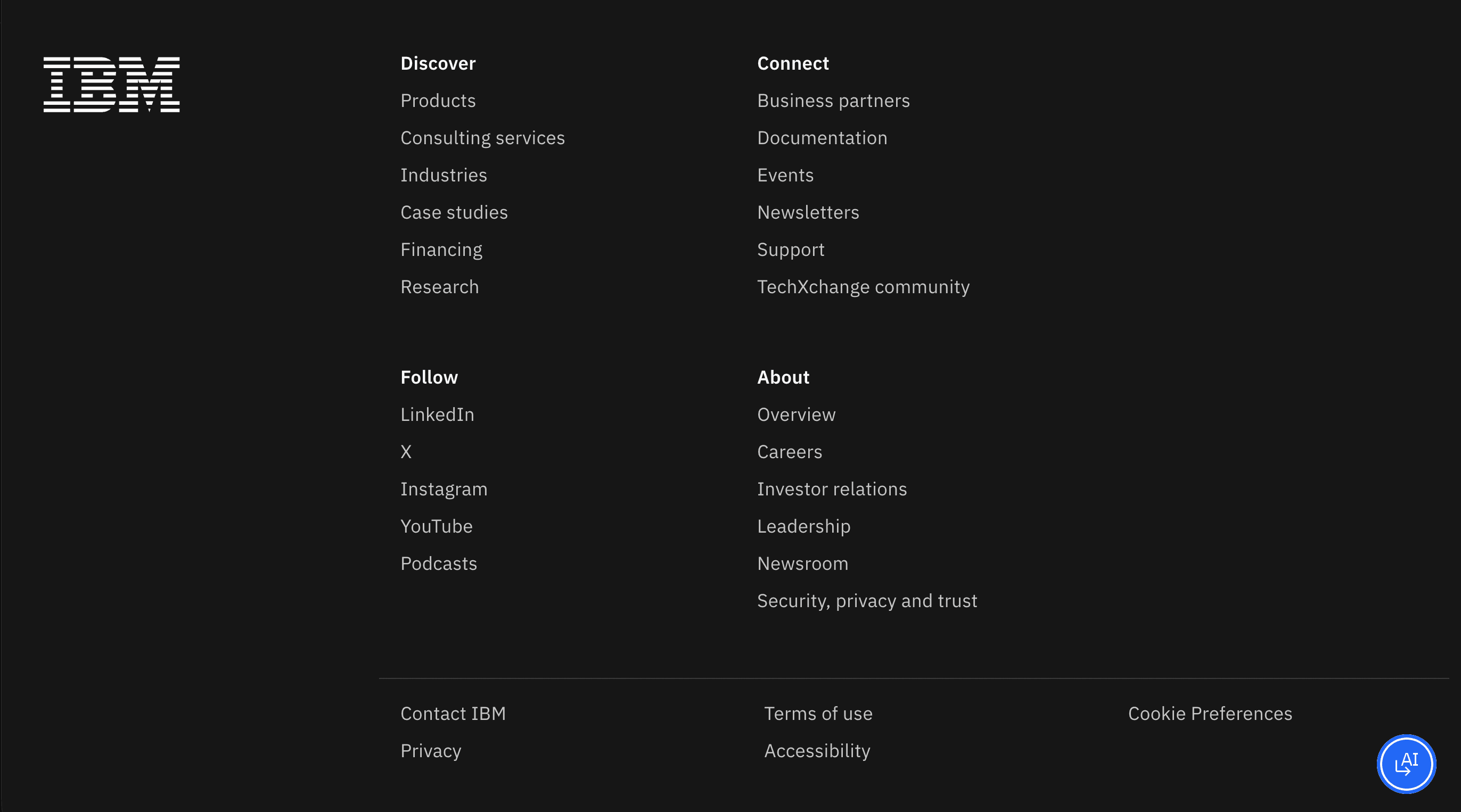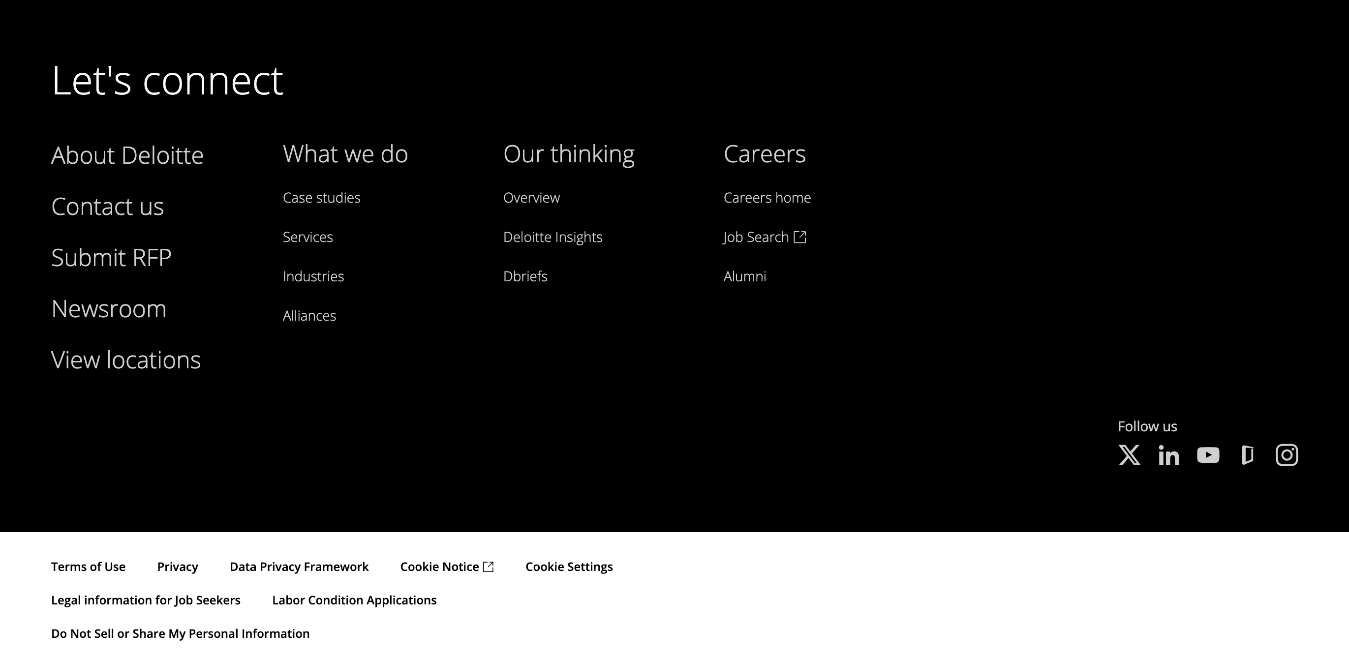 Across multiple enterprise sites, footer content is broken into a few clear sections. Each section keeps the number of links manageable, which makes it easier to quickly scan rather than read through long lists.