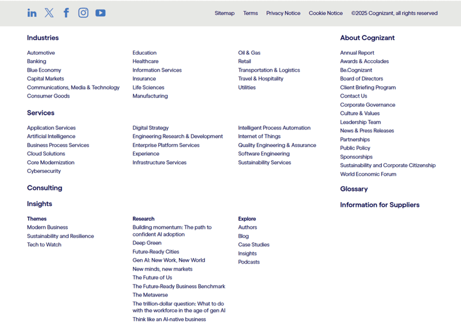 Site-wide footer on cognizant.com