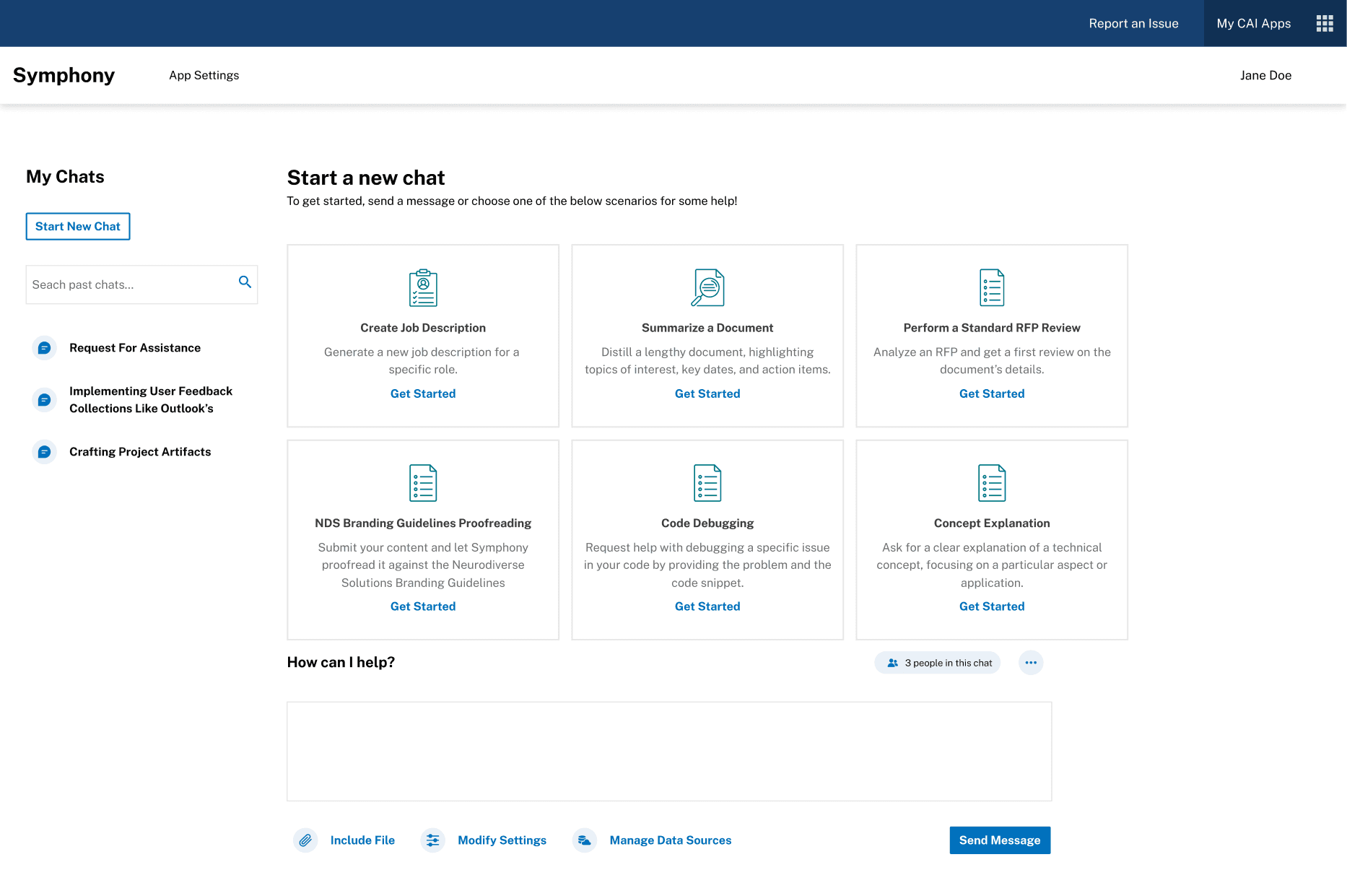 Symphony is CAI’s internal AI assistant used daily across multiple teams. I led UX research to understand how employees store, organize, and retrieve data — and what they need from a centralized Data Collections feature. My goal was to translate real workflows into clear opportunities for the product team.
